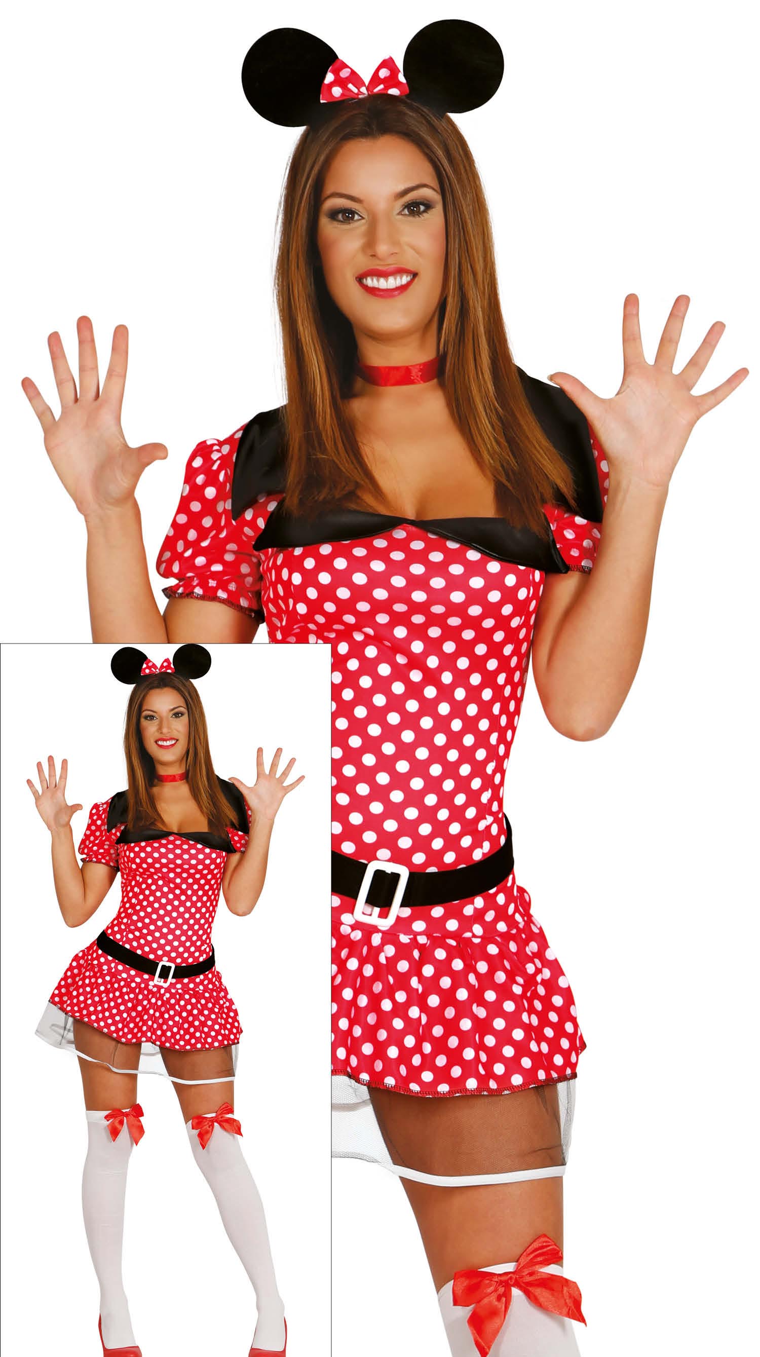 ΙΤ_83672 ΣΤΟΛΗ ΠΟΝΤΙΚΙΝΑΣ ΕΝΗΛΙΚΩΝ Γυναικεία Στολή Ποντίκι. Αποτελείται από κοντό φόρεμα σε κόκκινο ύφασμα με λευκά πουά, μεσοφόρι από τούλι, μαύρη ζώνη και κεφαλόδεσμο με φιόγκο και αυτιά ποντικιού. |