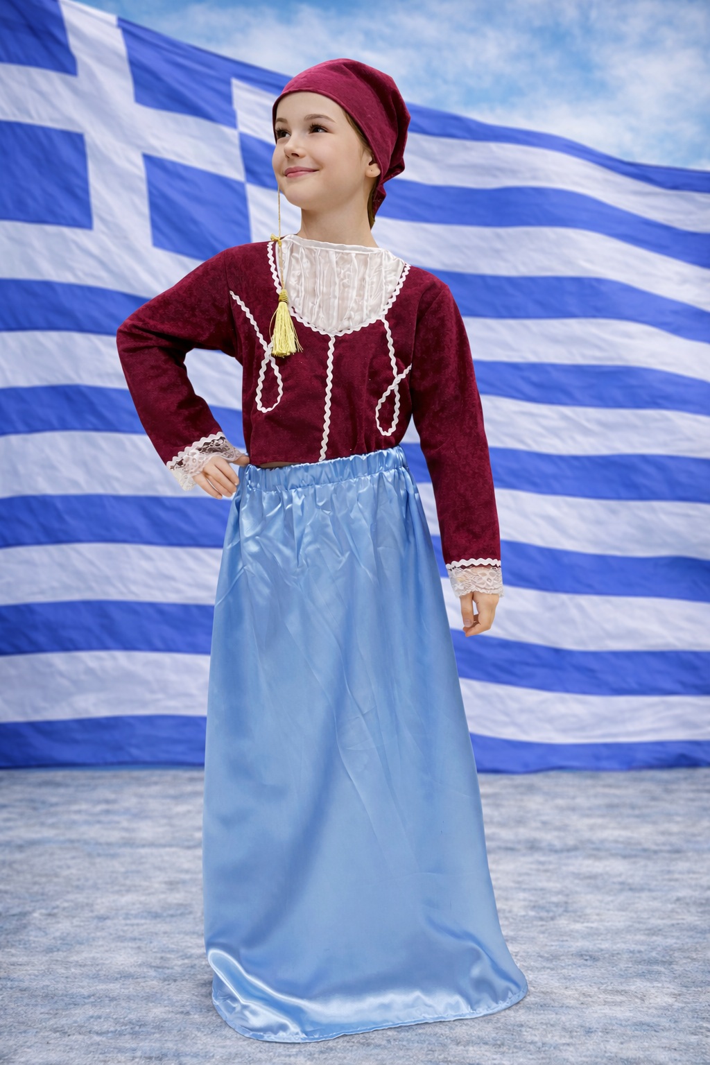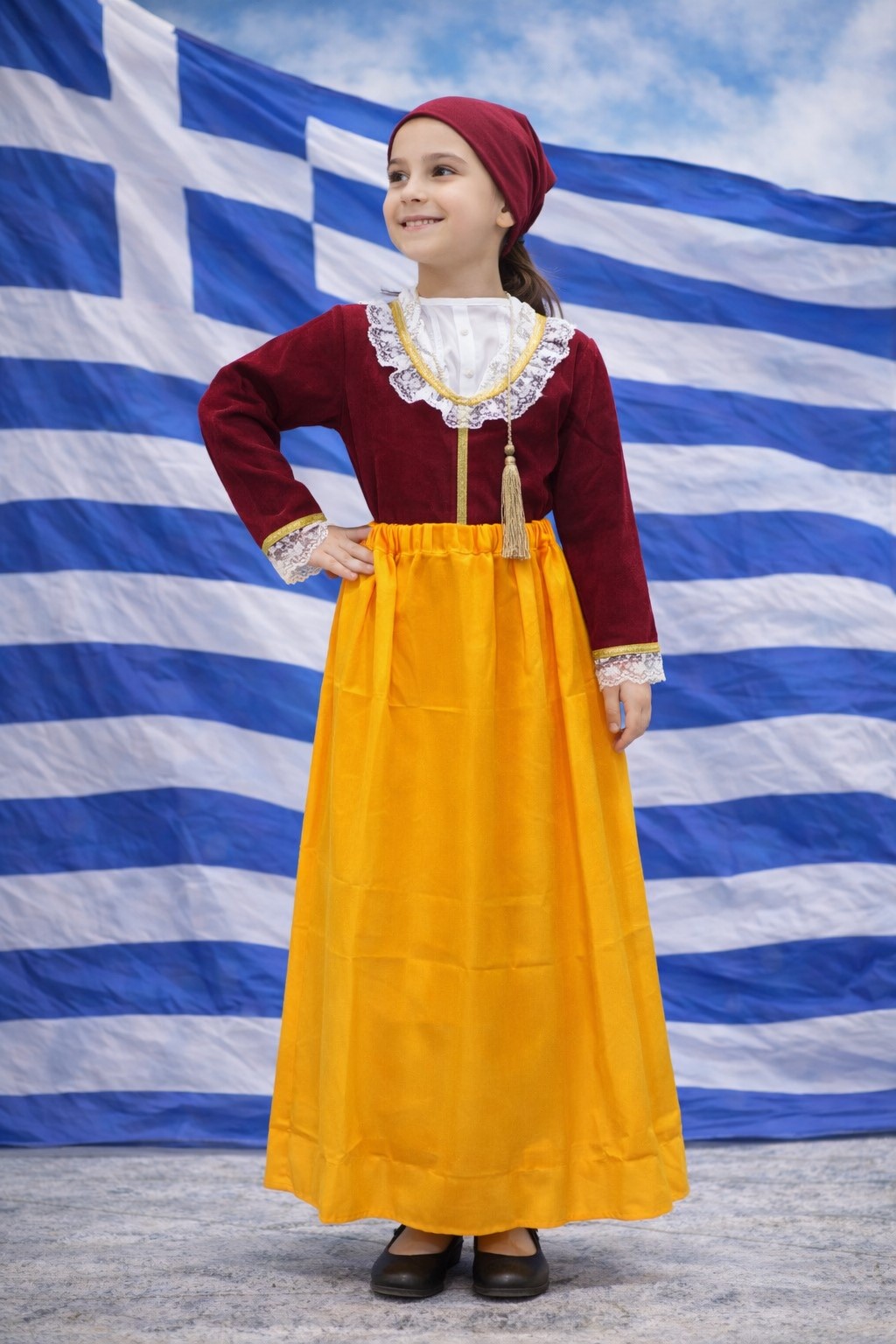 Β_646006 Παιδική Στολή Παραδοσιακή Μαντώ Μαυρογένους (Ελληνικής Κατασκευής) Ηλικία : 6 ΧΡΟΝΩΝ Η στολή αποτελείται από: Ζακέτα, Φούστα, Ζώνη κ Καπέλο |