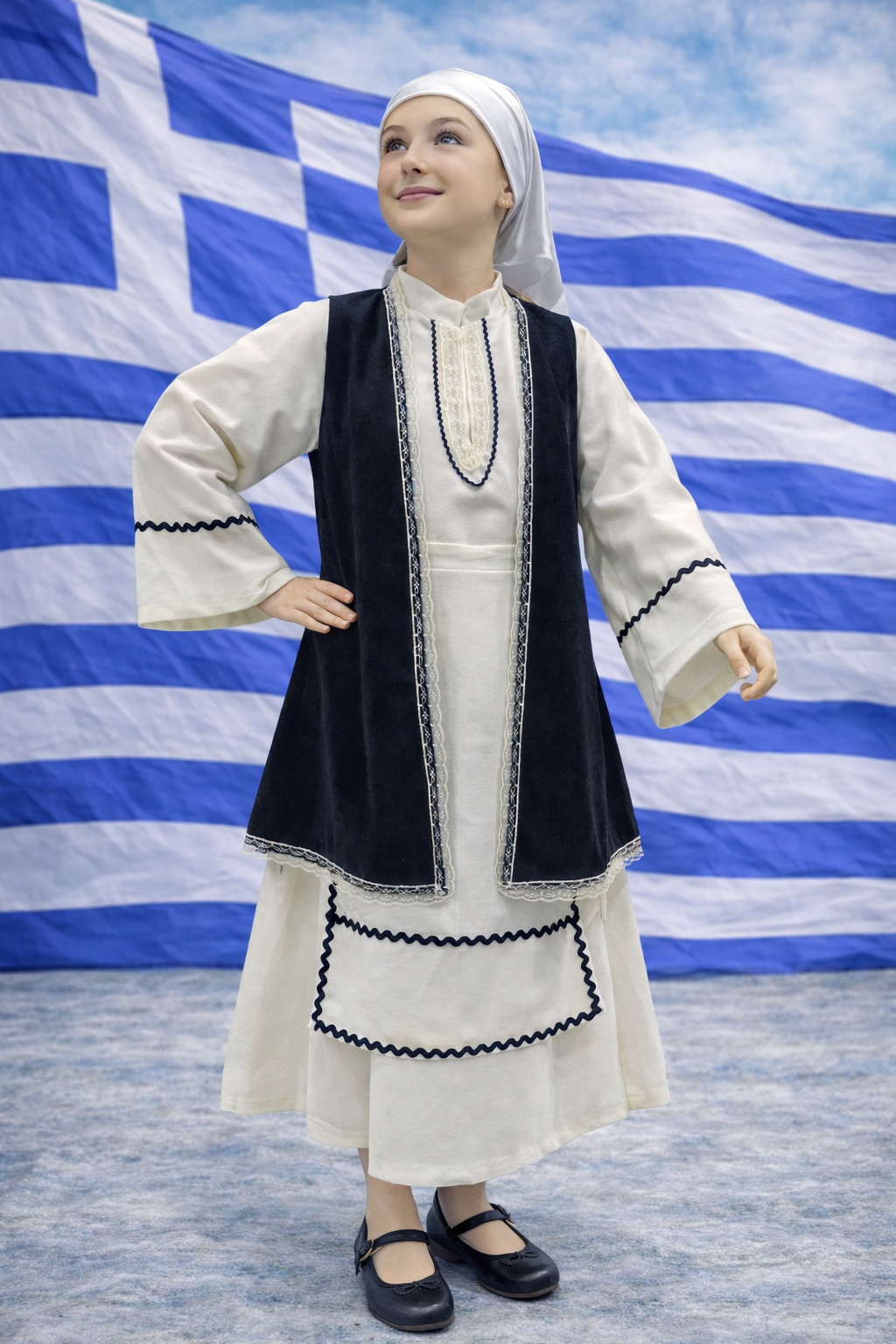 Β_648008 Παιδική Στολή Παραδοσιακή Σουλιώτισσα Παρέλασης (Ελληνικής Κατασκευής). Ηλικία : 8 ΧΡΟΝΩΝ Η στολή αποτελείται από: Σεγκούνι, Φόρεμα, Ποδιά κ Μαντήλι. |